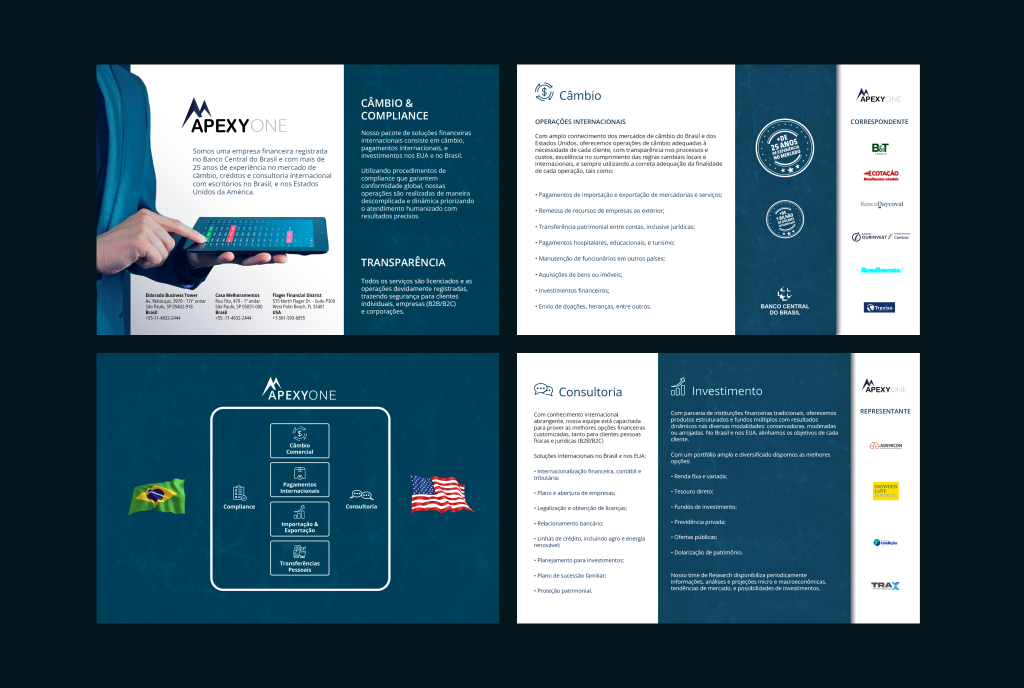 A ApexyOne é uma empresa que atua na área de soluções financeiras entre Brasil e Estados Unidos há mais de 20 anos, tendo experiência para as necessidades financeiras de seus clientes.